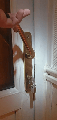 Eventually, I did get the door opened, which involved dismantling almost the entire door to pieces instead of making holes through it. See below the only pictures I took, and bear in mind by the time the door was opened, its mechanism was almost empty of any parts, which is why you won’t see a close-up picture of it: