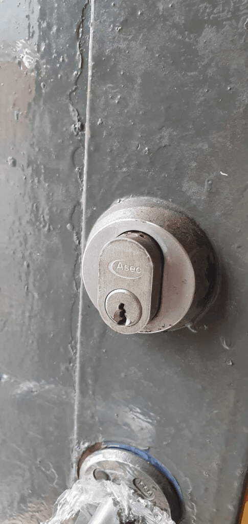 As a ‘glorious return’ involving a change of locks in Newcastle, I was tasked with replacing the second lock on this door, a Scandinavian lock. Sounds exotic, doesn’t it? Well, while it may sound so, its basic concept is pretty similar to a normal door lock, minus its middle part, which doesn’t ‘exist’ in this particular model. Indeed, this Scandinavian lock is made of two halves featuring a tiny little tail that slots in the mechanism, allowing it to do its job when you turn the key.